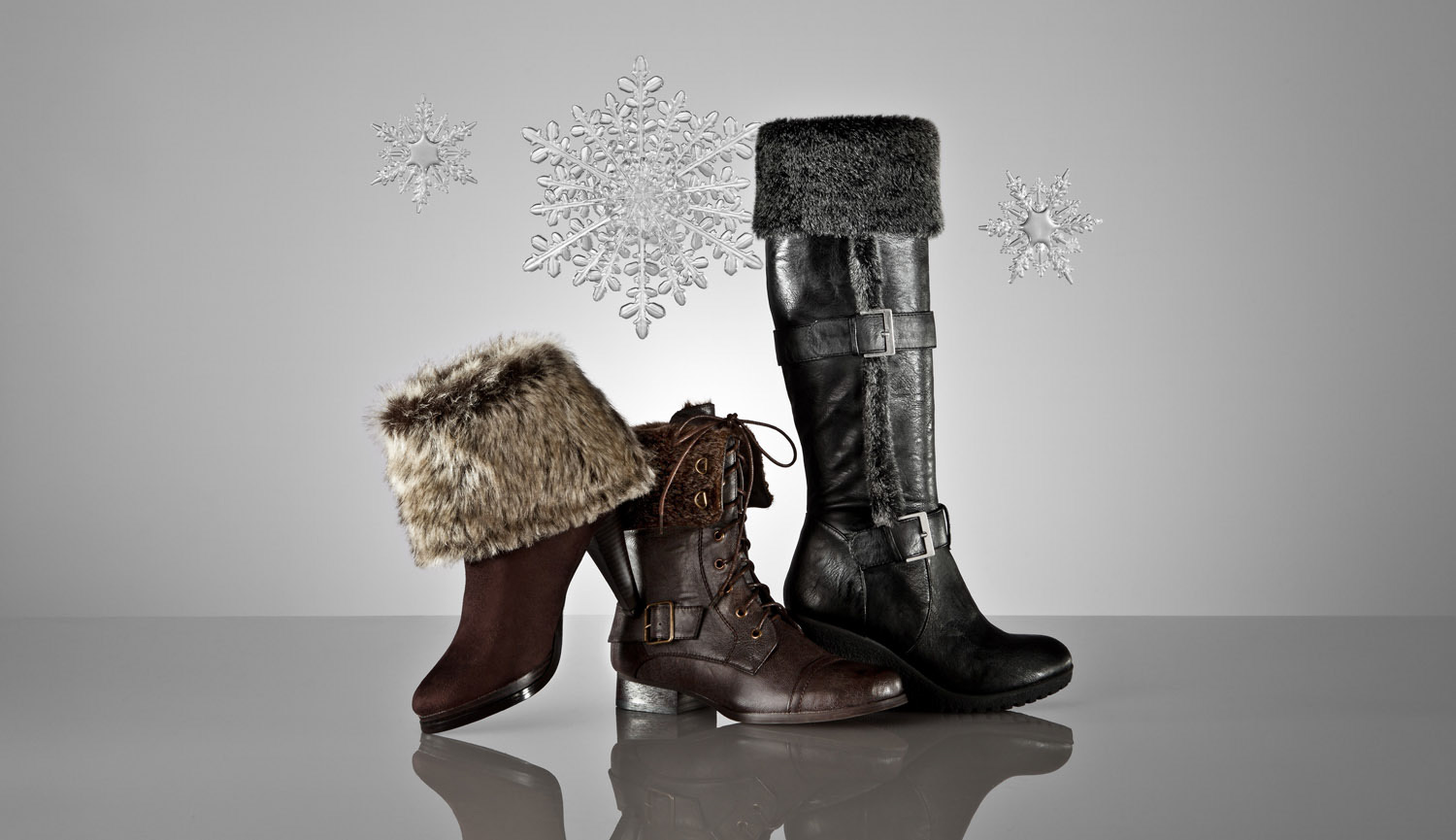 A sample of advertising campaigns with various footwear images that we retouched here at *POST. Multiple exposure and brackets combined to create the final imagery.